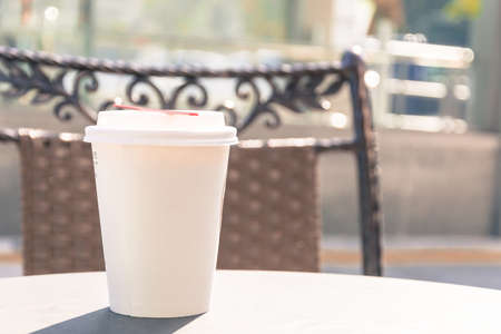 hot coffee paper cup in cafe restaurant.