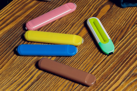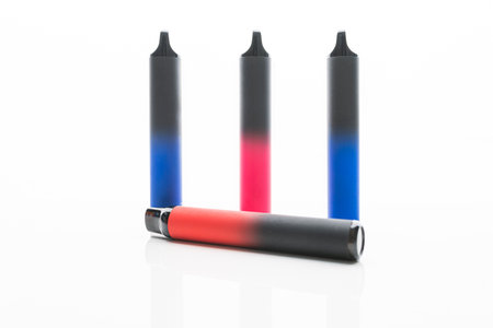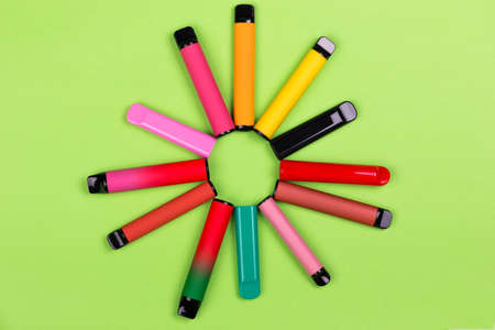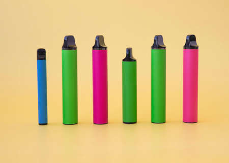 Colorful electronic cigarettes vape devices. Modern vaping gadgets in different colors, alternative to traditional smoking.