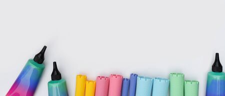 Assorted Vapes Displayed in a Row with Varied Designs and Colors. Concept of Modern Smoking Alternatives, Diverse Vape Styles, and Contemporary Personalization. White background. Banner.
