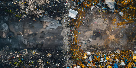 Waste Pollution: Aerial View of a Landfill with Plastic and Food Waste Impacting Nature. Concept Waste Pollution, Landfill Aerial View, Plastic Waste Impact, Food Waste Impact
