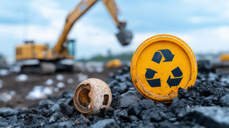 Eco-friendly waste management systems are effectively minimizing landfill usage through advanced recycling practices at an active construction site with machinery in the background.