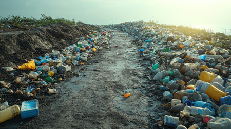 A landscape marred by garbage an ecological disaster of polluted land contaminated with waste discar