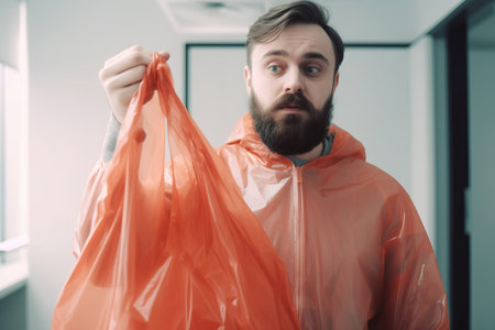 Girl take the plastic bag over her head, embarrass to use the plastic bag, reduce plastic bags concept