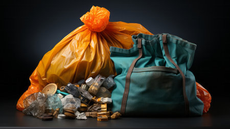 Full garbage bags on orange background