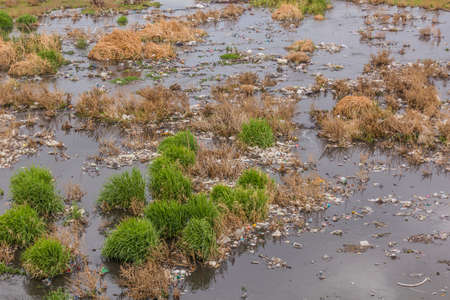 Big plastic pollution. Very important plastic and trash pollution on beautiful lake. Mangrove forest is the very important environmental system for sea life.