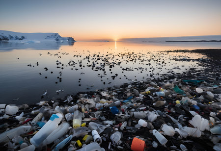 Plastic Waste Accumulates on Shoreline, Highlighting Ocean Pollution and Environmental Damage