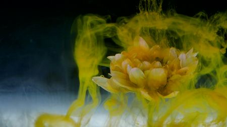 Yellow ink in water, artistic shot, abstract background