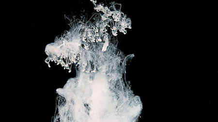 White watercolor ink in water on a black background. Meditative magic abstract background. Black and white art. White cloud of ink on a black background. White watercolor paints in water.