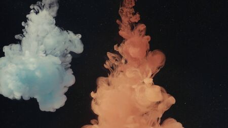 Color paint drops in water. Ink swirling underwater. Cloud of silky ink collision on black background. Colorful abstract smoke explosion animation. Close up camera view.