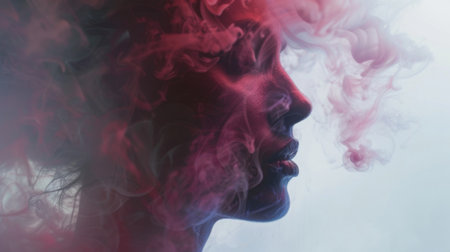 The blend of pastel smoke against a stark white background gives this portrait an otherworldly and ethereal feel
