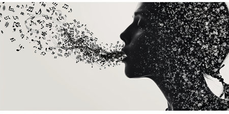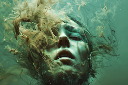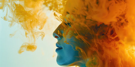 Surreal portrait of a human face dissolving into particles