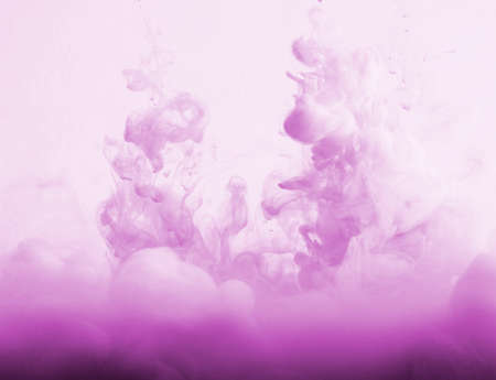 Pigment drop. Paint pour water. Color purple brown smoke flow in fluid. Spread cloud dye explosion wave abstract defocused background.