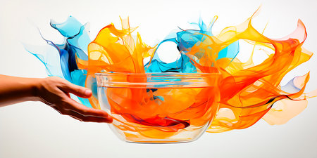 A captivating image of vibrant glass shards floating gracefully against a colorful background, enhanced by sparkling water droplets and soft focus elements.