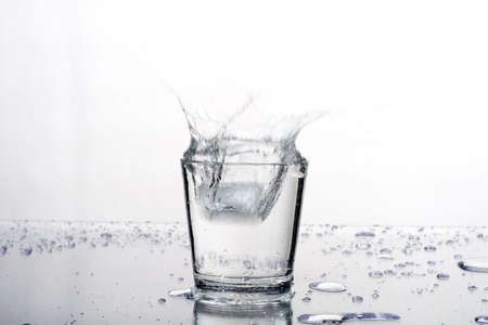 Clear glass shatters as water splashes around, capturing the moment of impact and chaos.