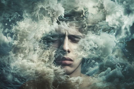Emotional turmoil. surreal portrait of mental struggle - artistic therapy concept