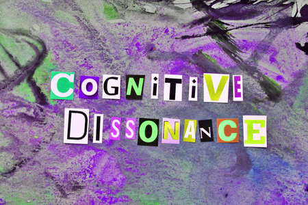 Cut out colored letters from magazines and compilation of cognitive dissonance