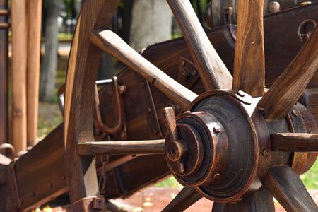 Wheel of artillery guns of the beginning of the 19th century on the axis.