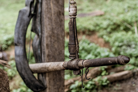 Old traditional weaving equipment use for making fabric or cloth. path of loom use in Korean household in the past.