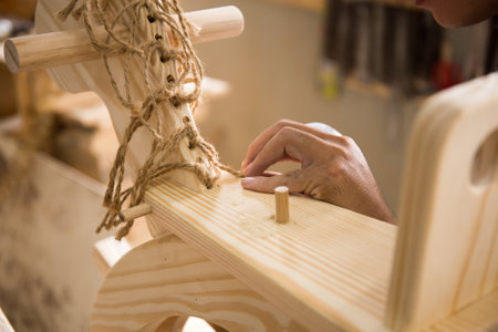 A carpenter making a wooden horse swing