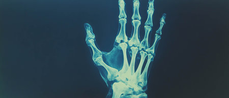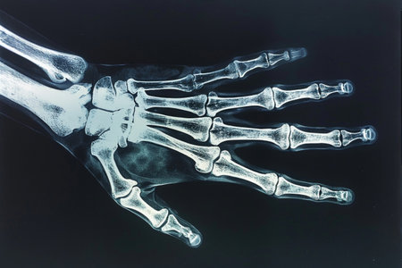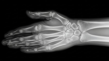 Detailed X-ray image of a human hand and wrist bones