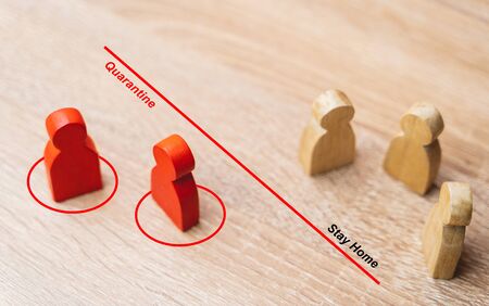 Social distancing during the Corona virus outbreak, red wooden Figure were infected Exclude from people who are not infected to prevent increased outbreaks in Social distancing or infectious concept