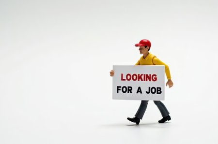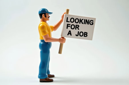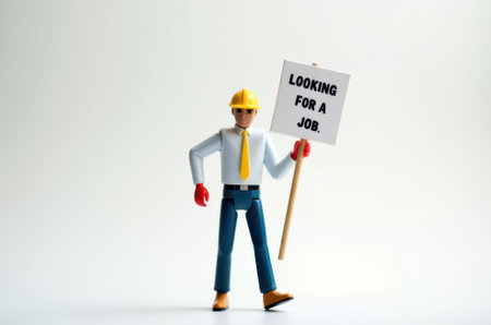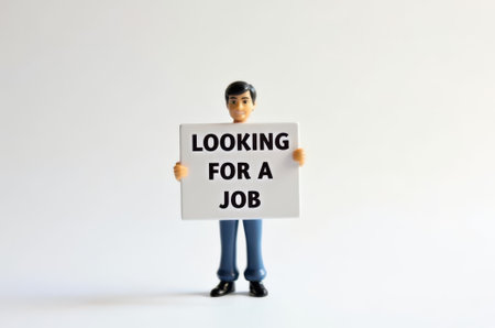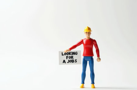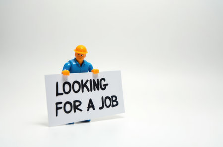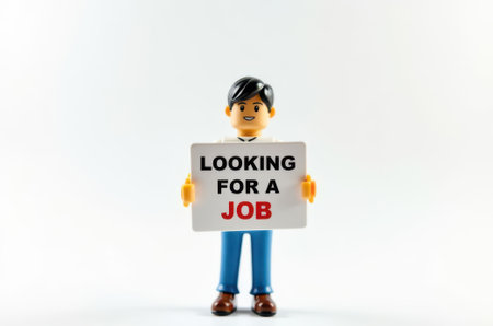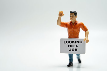 toy man holding a sign with the text (I'm looking for a job) on a white background
