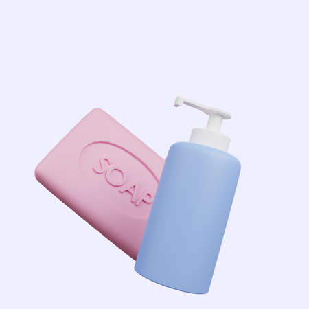 Soap with bubbles on a blue background. 3d illustration.