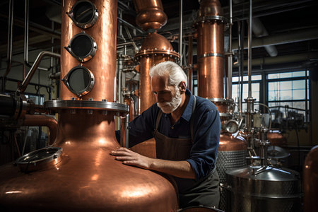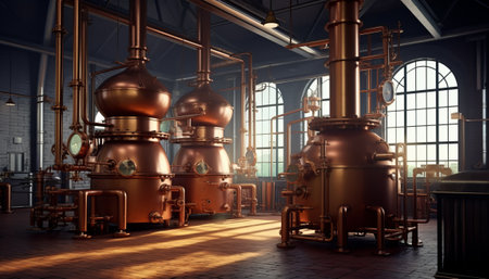the industrial equipment used in brandy production, highlighting the intricate processes and machinery involved