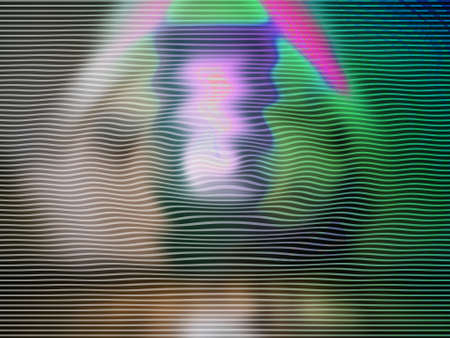 Digital glitch effect with vivid scan lines and distorted colors reminiscent of old TV screens
