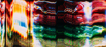 Glitch effect creating digital distortion with chaotic noise in a dark setting