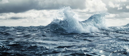 A turbulent ocean with waves crashing under a cloudy sky