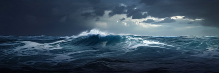 A breathtaking scene capturing dark ocean waves beneath a dramatic sky, evoking feelings of awe and admiration for nature's raw and untamed beauty.