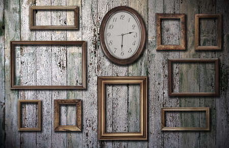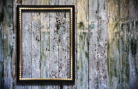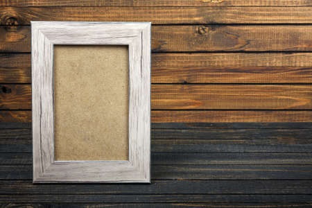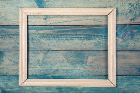 Old photo frame on old wooden background - Vintage filter processing style pictures
