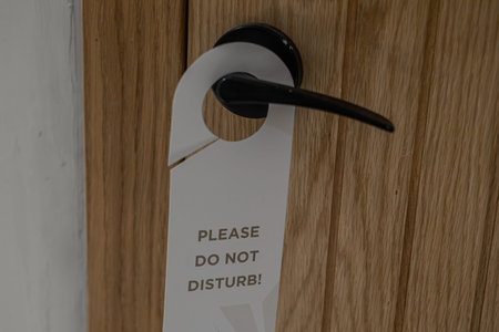 Hotel door hanger with do not disturb sign during daytime