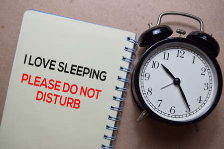 I love Sleeping Please Do not Distrub write on a book. Isolated on wooden table