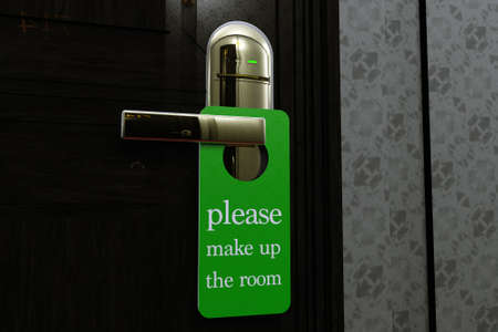 Information tag on the door of a hotel bedroom left for the cleaner to clean up