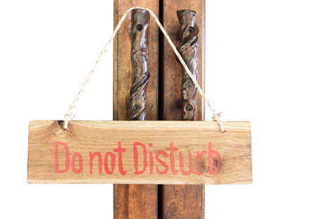 Wooden sign with do not disturb hang on door isolated on white background include clipping path