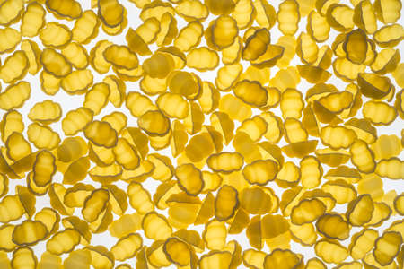 Close-up shot of ditalini Italian pasta. Pasta background pattern. Italian food.
