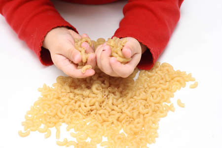 Uncooked pasta on neutral background. Meal based on flour. Italian healthy food.