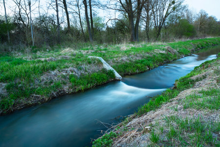 A fast-flowing small river in eastern Poland, long exposure photo