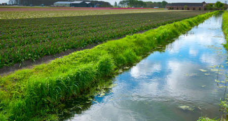 Irrigation Canal between the Fields of Tulips, Netherlands
