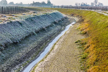 irrigation canal in droughts in winter in the Italian countryside