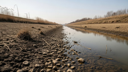 AI Generated. Pollution in Abandoned Canal with Litter and Vegetation
