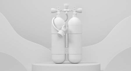 Set of diving tank full oxygen for summer holidays and snorkeling on white background.. 3D render of summer vacation concept and holidays