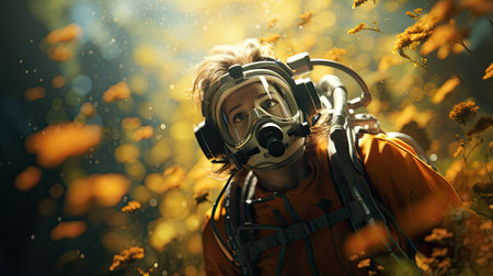 deep sea diver, digital art illustration, Generative AI