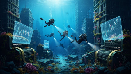 Deep sea diver utilizing advanced holographic technology for underwater city and shipwreck mapping