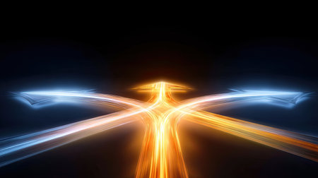 a striking image featuring converging arrows in orange and black on a dark background