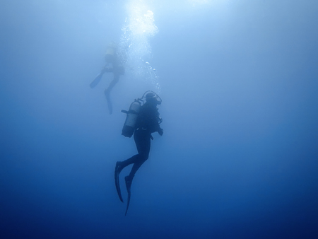 The beauty of the underwater world - diver at depth - scuba diving in the Red Sea, Egypt.