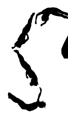 Mid-Flight Diving Board Jump Silhouettes isolated on plain white background.