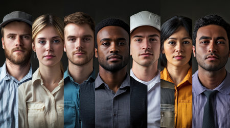 A diverse group of individuals showcases various expressions and styles in a portrait format. This image captures the beauty of community and unity among different cultures.